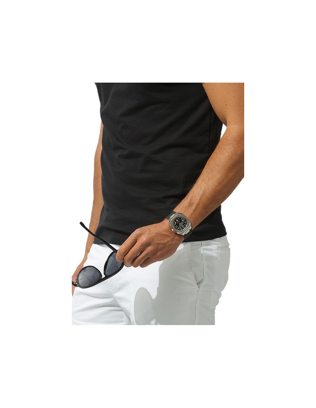 Un design distinctif inspiré de l'univers des outils professionnels conçus pour une mission spécifique. Un garde-temps-armure en acier, élégant et ergonomique. Un moteur réglé sur deux fuseaux horaires. Tels sont les codes du nouvel instrument de l'explorateur urbain. La BR 05 GMT est l’alliée du voyageur, l’accompagnant dans la transition entre différentes réalités urbaines. C'est l'outil ultime du globe-trotter.